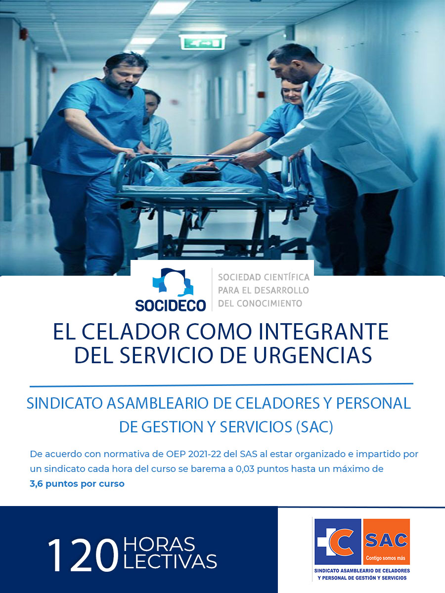 Entidad que acredita: Curso organizado e impartido por el SINDICATO ASAMBLEARIO DE CELADORES Y PERSONAL DE GESTION Y SERVICIOS (SAC) presente en el sector sanitario y en donde SOCIDECO participa como centro colaborador