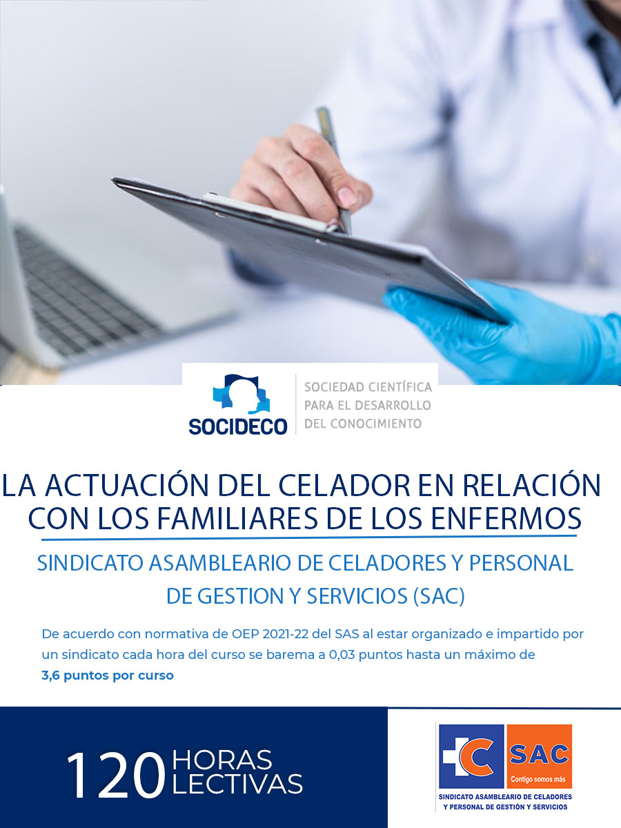Entidad que acredita: Curso organizado e impartido por el SINDICATO ASAMBLEARIO DE CELADORES Y PERSONAL DE GESTION Y SERVICIOS (SAC) presente en el sector sanitario y en donde SOCIDECO participa como centro colaborador