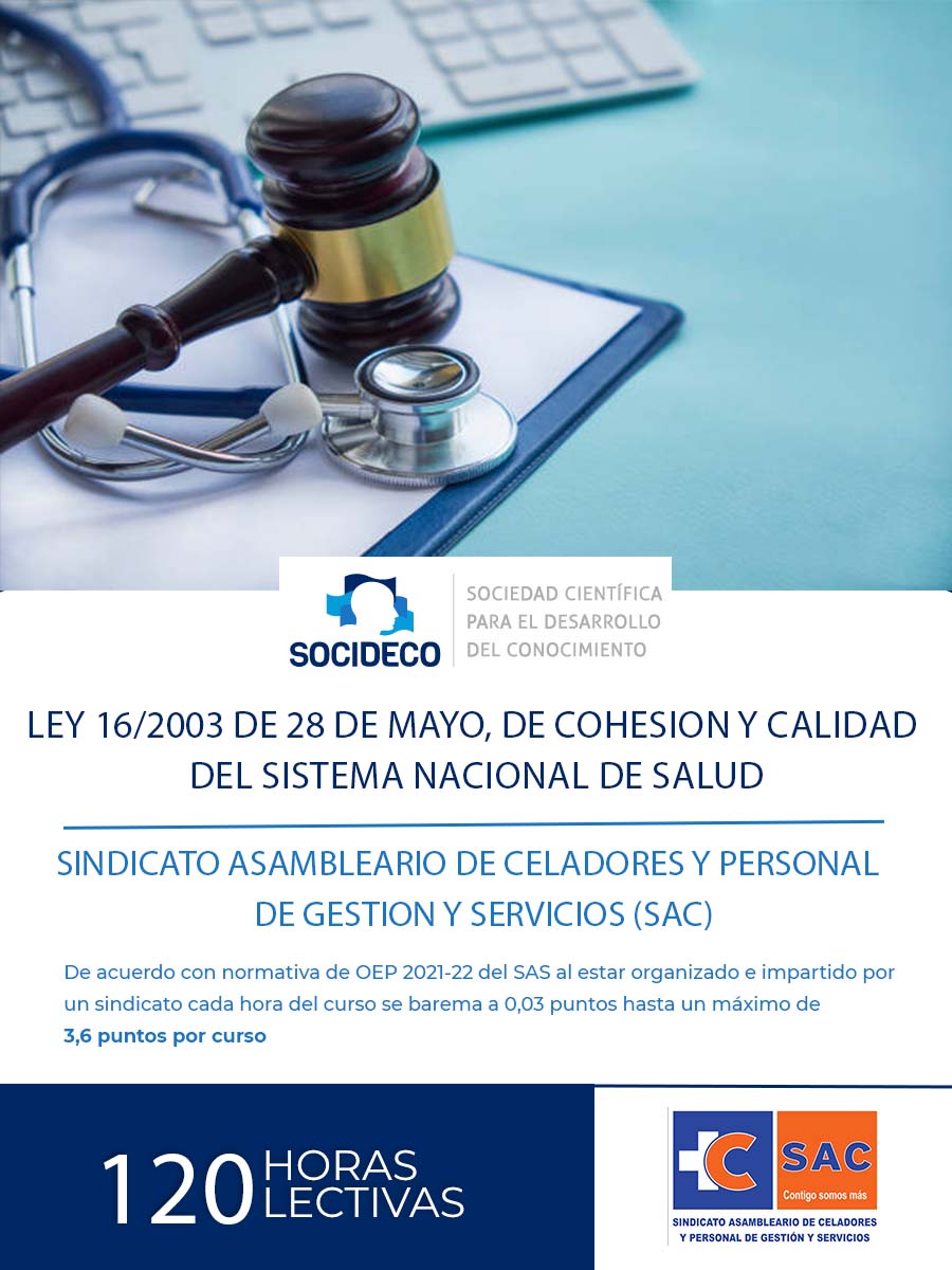 Entidad que acredita: Curso organizado e impartido por el SINDICATO ASAMBLEARIO DE CELADORES Y PERSONAL DE GESTION Y SERVICIOS (SAC) presente en el sector sanitario y en donde SOCIDECO participa como centro colaborador